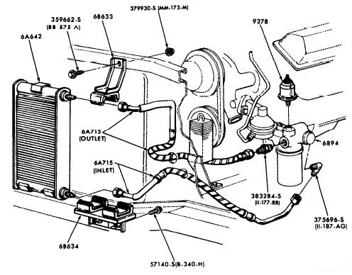 The 428 Super Cobra Jet also has an added external oil cooler hounted in front of the radiator support. This cooler requires the