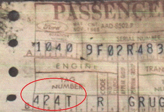 Early cars with the "424 S" coded engine used the C9ZF-9601-E air cleaner.