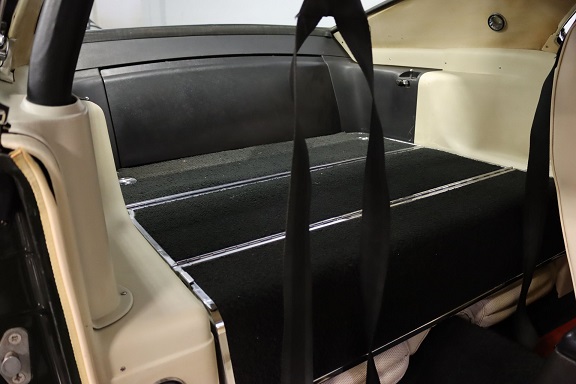 The black carpet continues on the fold down seat and the panels surrounding the trap door to the trunk.