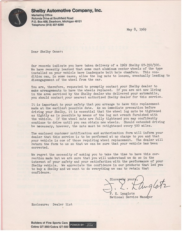1969 Shelby Wheel Recall Campaign U-01