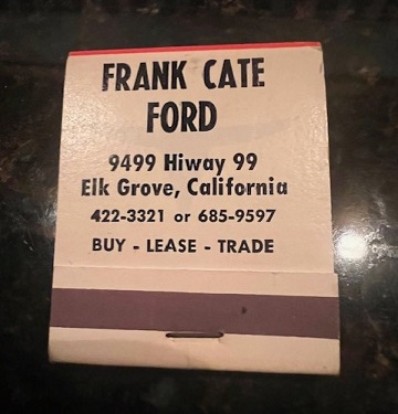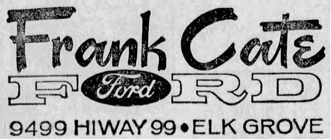 Frank Cate Ford was located at 9499 Highway 99, Elk Grove, California. The dealership was about 15 miles from Sacramento, California.
