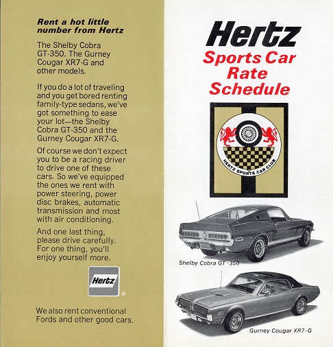 This Hertz brochure shows both the Shelby and the Cougar XR7G.