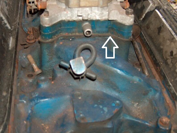 The ported vacuum switch on the front of the intake should have some blue paint around the base. It was present when the engine was painted and masked off.