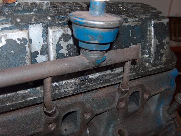 The driver's side valve cover features a push-on style, chrome oil cap.