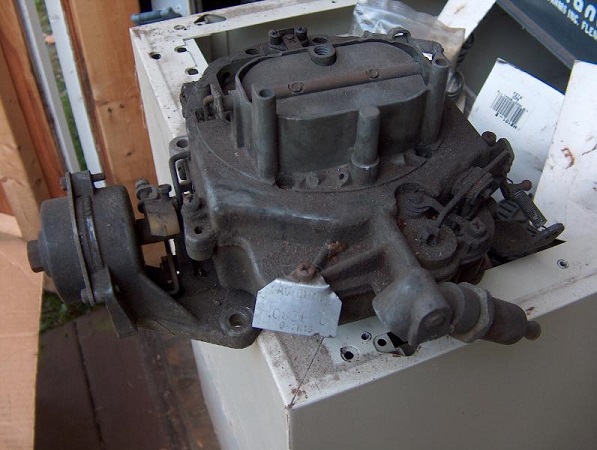 The carburetor spacer was aluminum with one vacuum port on the back. It was present when the engine was painted.
