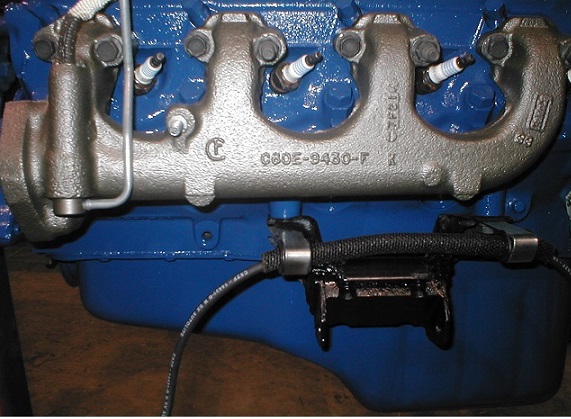 This picture shows the thermactor tube and valve installed in the cylinder head.