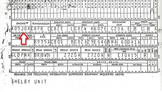 This caused some problems, because the Ford Mustang used the same code for a 390 engine. There were no Shelbys with 390 engines.