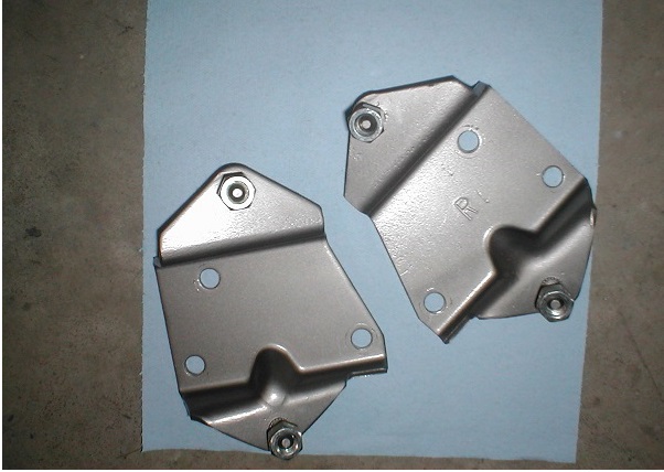 These engine mounting brackets are bare steel and screw to the sides of the block. Ford stamped one "R" for the right side. They can be installed incorrectly. Ask me how I know :-)