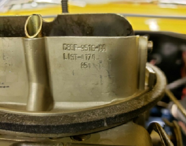 The original carburetor is marked C80F-9510-AA. It is not unique to the KR, but is Cobra Jet specific. There are reproductions of this carburetor.