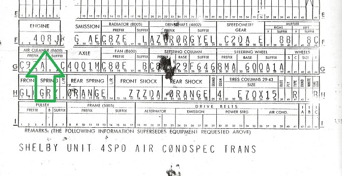 The engine code used on the GT500 KR with a 4 speed transmission was "408 J".