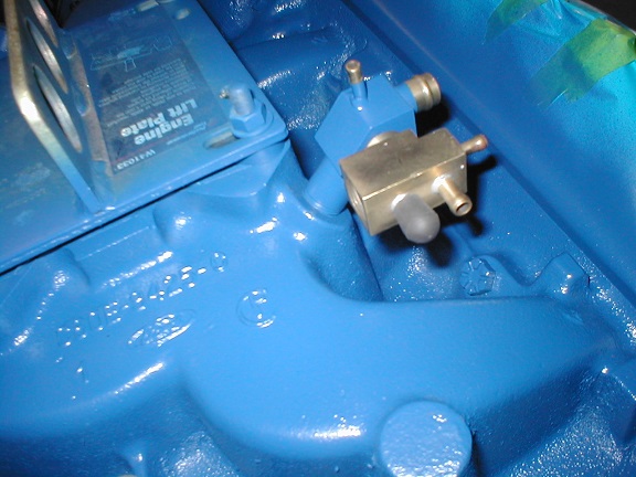 The water pump bypass hose is actually thicker than regular heater hose. It was painted blue with the engine assembly and tower clamps.