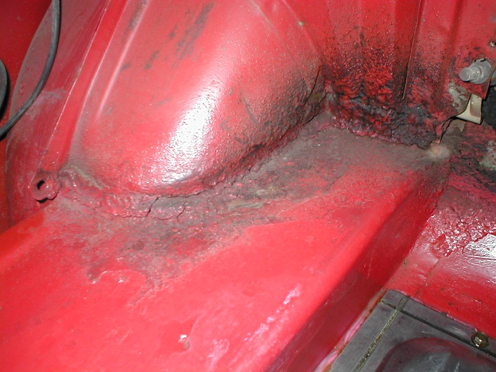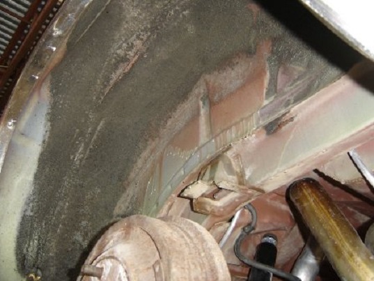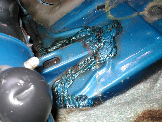 This area where the wheel house meets the trunk floor was very heavy. The goal was to seal all