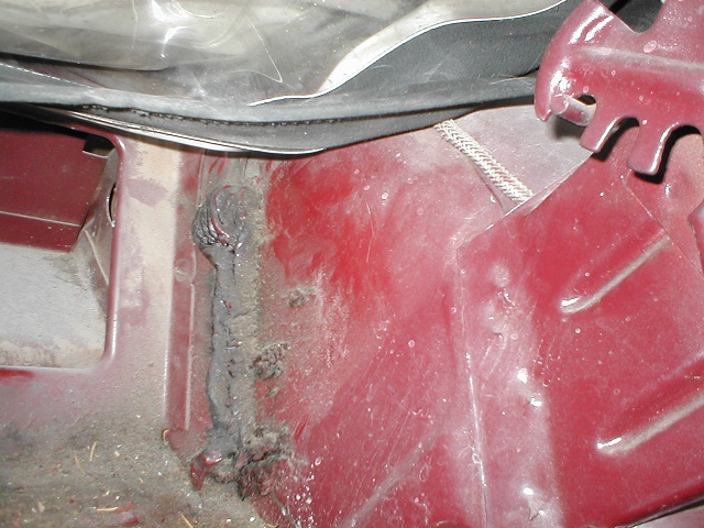 The side cowl, behind the front fenders, was sealed with a spray sealer.