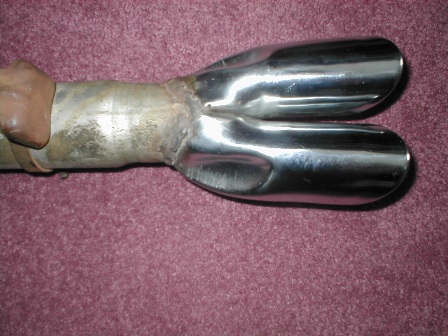 This is an original GT500 KR tail pipe. The chrome tip is welded in "v" pattern and the tips have a rolled edge.